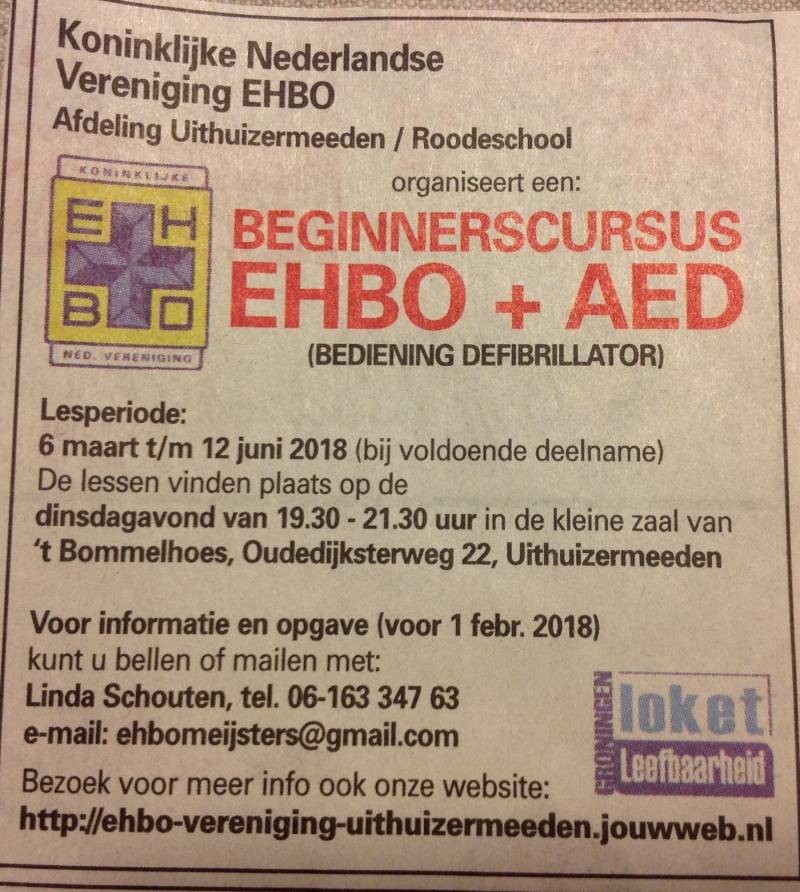 Onze EHBO vereniging start een beginnerscursus in de periode 6 maart 2018 t/m 12 juni 2018.