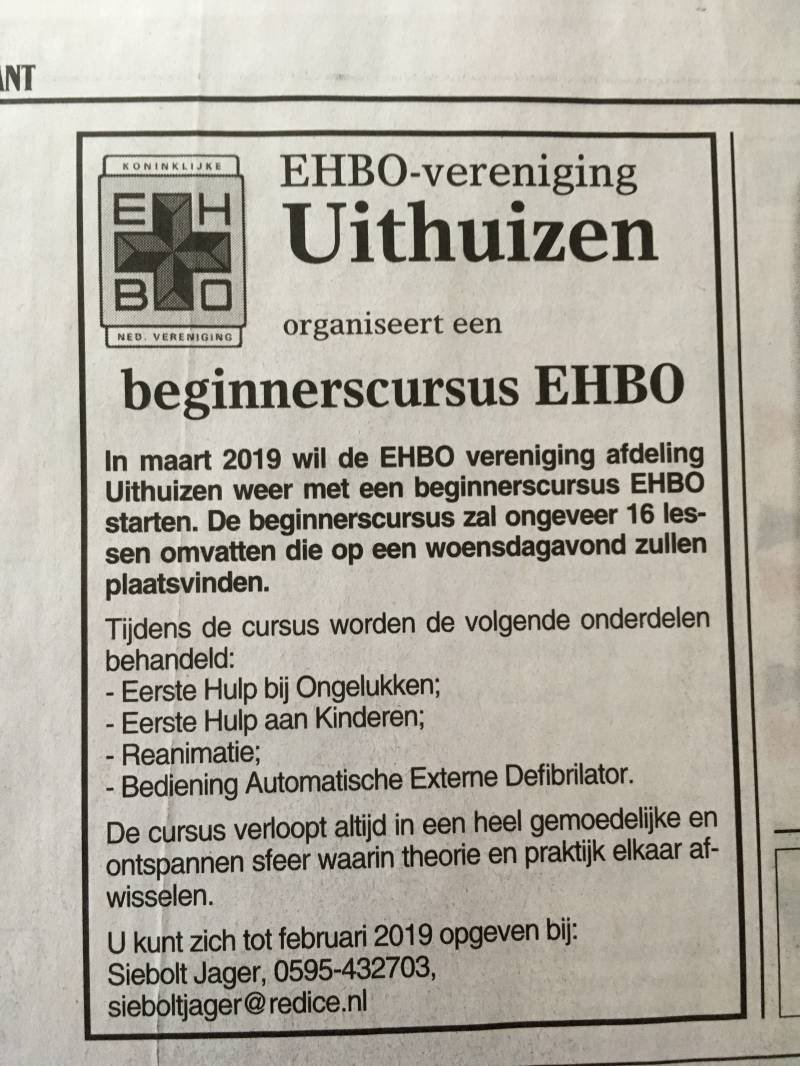 U bent uiteraard altijd welkom om u aan te sluiten bij de EHBO vereniging Uithuizen.